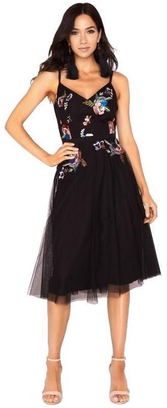 Midi šaty s flitrovým zdobením a výšivkou