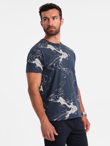 Zaujímavé modré tričko s potlačou v3 om-tspt-0137