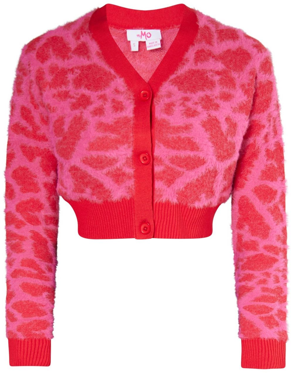 Fuchsia cardigan with OH BELLA inscription on the back